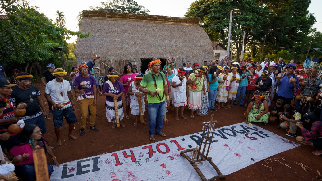 A ação foi paralisada após a decisão do ministro Edson Fachin, do STF, que suspendeu a tramitação de processos envolvendo terras indígenas até o término do julgamento do Tema 1031, de repercussão geral. A carta final do encontro de lideranças pede que o STF conclua o julgamento dos embargos do processo – último passo para que ele seja concluído.