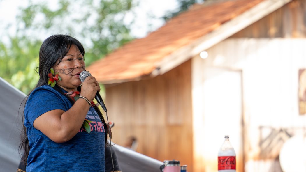 Alessandra Korap Munduruku, coordenadora da Associação Indígena Pariri – Médio Tapajós, Pará: “O que vocês estão enfrentando aqui no Mato Grosso do Sul, a gente também está enfrentando lá no Tapajós. Os garimpeiros, os madeireiros, os fazendeiros, os grileiros estão tomando as nossas terras também.