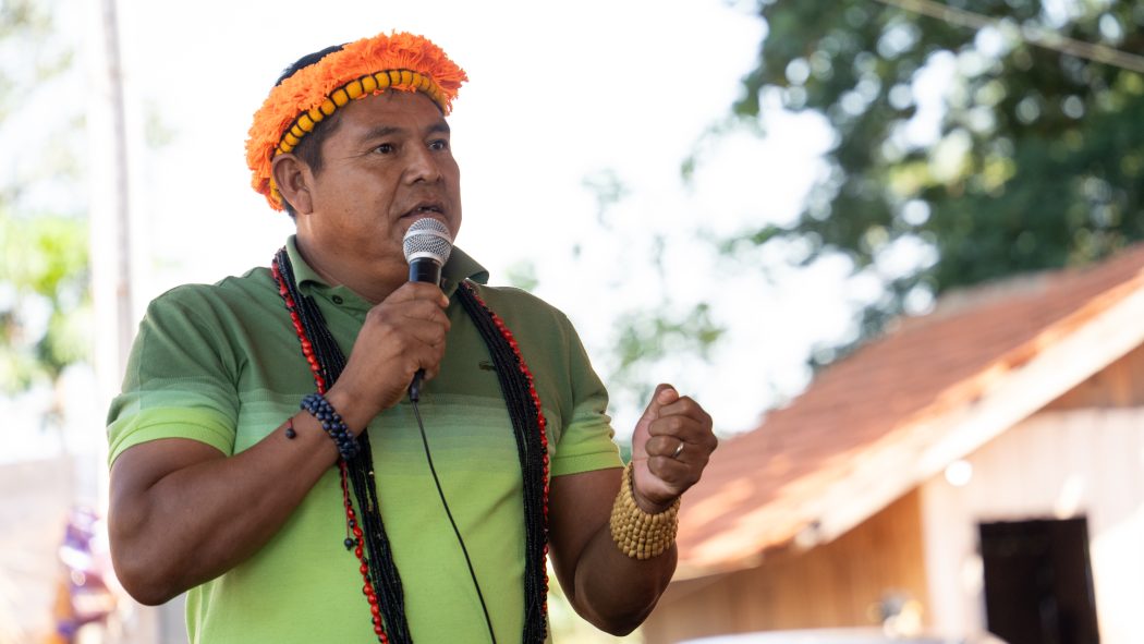 Ilson Nukini no Encontro nacional de lideranças no tekoha Ita’y, na TI Panambi – Lagoa Rica, em março de 2025. Foto: Tiago Miotto/Cimi