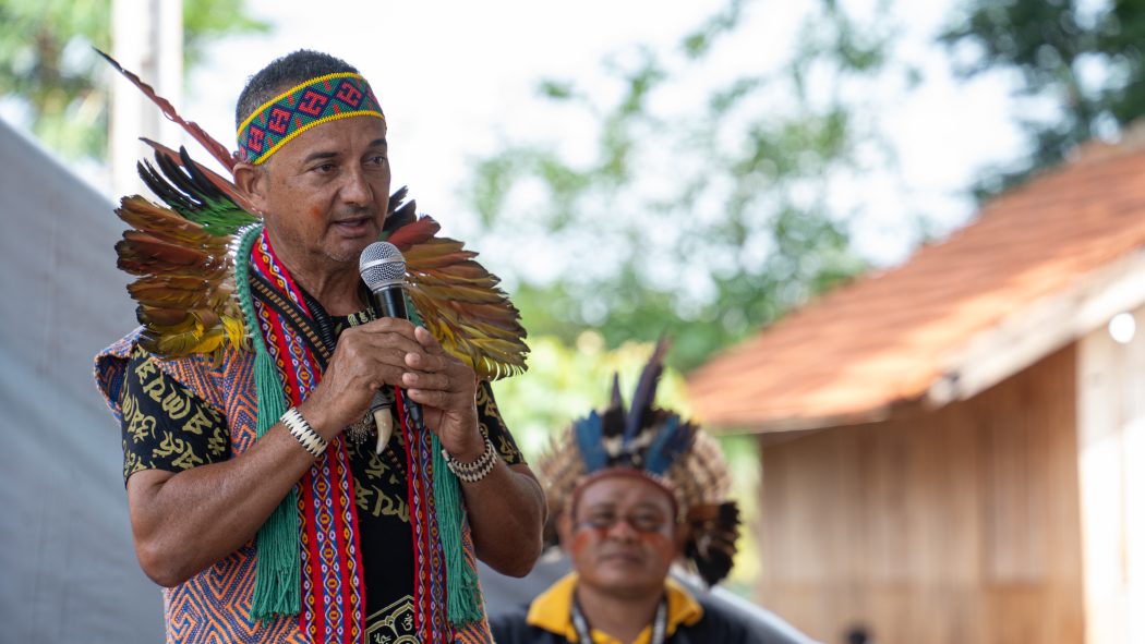 O mundo está mudando, o político vai vir aqui, quer negociar tudo. E eu estou vendo esse gás carbônico que está tendo, mas os povos indígenas não vão ganhar nada. Nós vamos vender o que Deus deixou para nós? Não é mercadoria, é trabalho de Deus. Ninguém tem esse poder, não. Aqui quem manda somos nós, para defender a nossa vida, não é para transportar para outro país.”