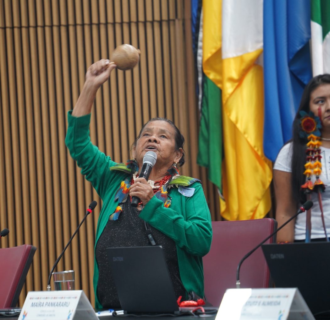 Dejanira, anciã do povo Krenak, durante a sessão plenária, na Comissão de Anistia. Ela foi vítima da repressão do regime militar e, na infância, foi deslocada com a família para território Maxakali. Foto: Maiara Dourado/Cimi