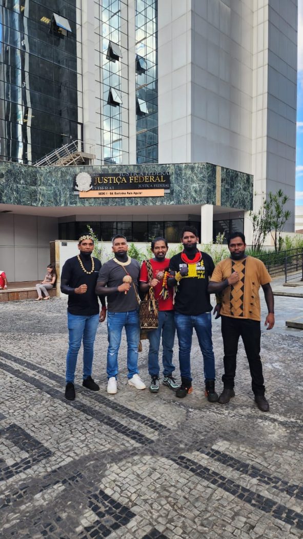 Representantes do Povo Krenak celebram a confirmação judicial do direito à reparação pelos danos coletivos causados durante a Ditadura Militar. Foto: Douglas Krenak“É um momento histórico pro nosso povo, essa decisão da Justiça Brasileira abre uma discussão sobre todos crimes cometidos contra nós, Krenak, e todos povos indígenas no país. E mantém nossa esperança de ter nosso território tradicional regularizado”, considerou Douglas.