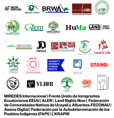 - Aos sistemas internacionais e regionais de direitos humanos, aos Estados e às instituições europeias e multilaterais: que mantenham uma observação ativa e sustentada sobre a situação de desmantelamento do estado plurinacional e intercultural de direitos, do direito de associação e dos direitos da Natureza; tudo isso impulsionado pelo Governo Nacional do Equador em funções através de diversas estratégias e com a ação conjunta da institucionalidade.